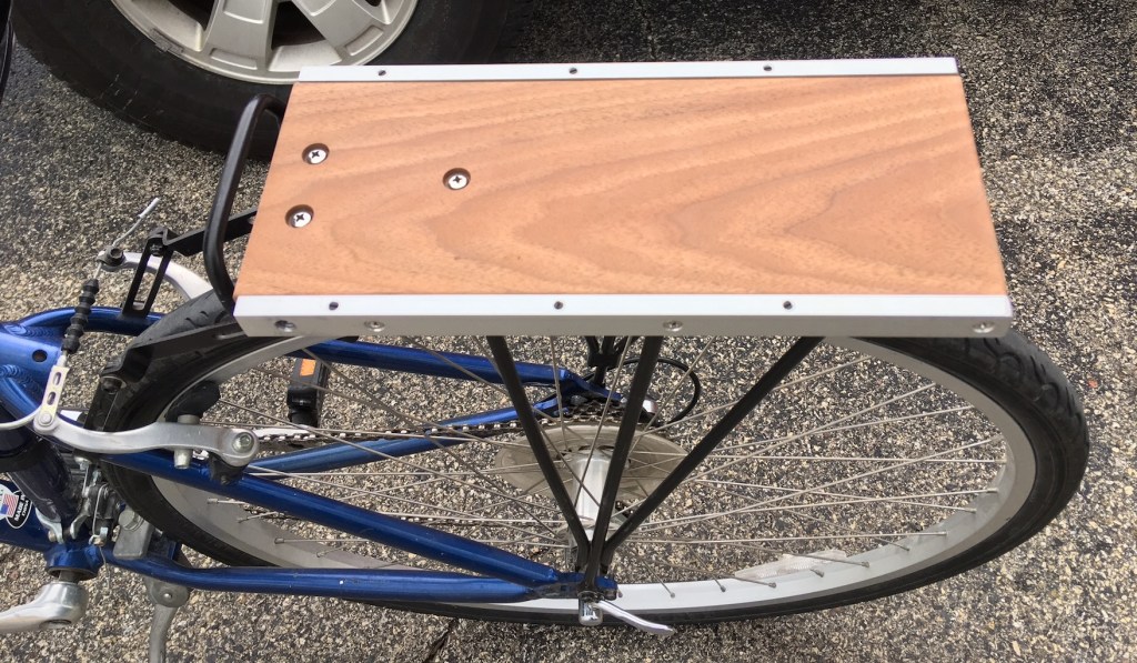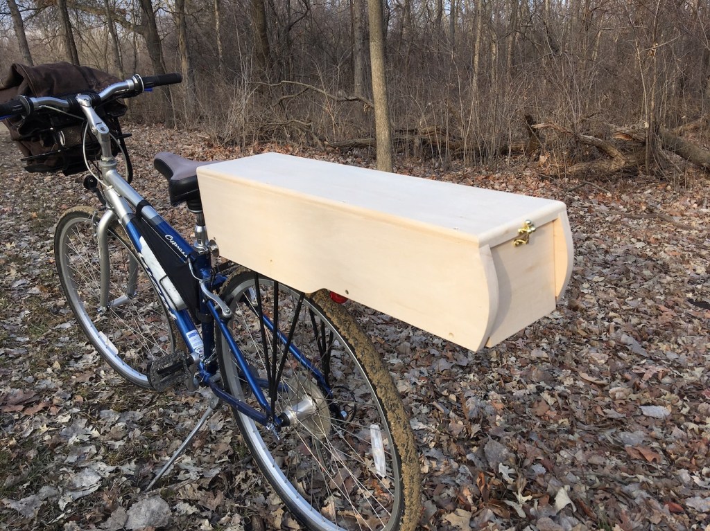 Once I’ve perfected the design my plan is to add another “shelf” to the top of the tripod box that is the same size as the one on my bike rack. Then I will build a smaller box or basket that can hold additional gear, clothing, food, or ??? This modular design will allow the new, smaller box to be attached directly to the bike (when I leave my tripod at home) or to the top of the tripod box. I like and appreciate flexibility in design work.